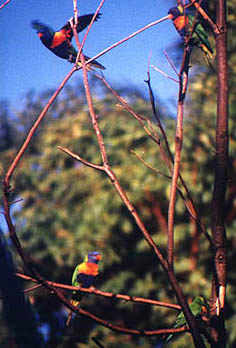 Rainbow Lorikeet's are abundant in parts of Australia, and they are noisey little parrots. It is so refreshing to see these brightly colored birds flitting here and there.